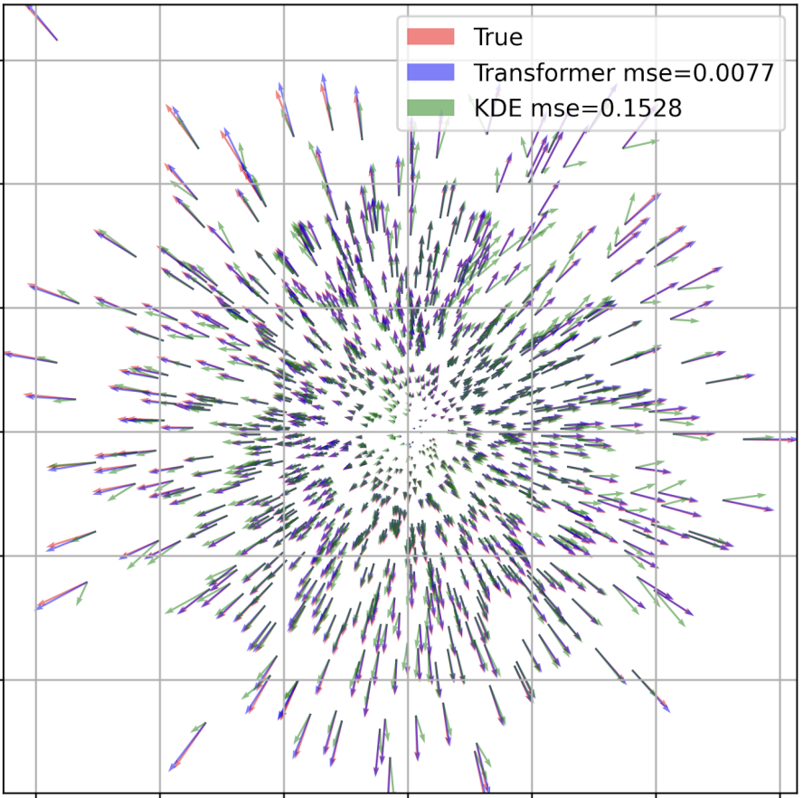 We introduce DiScoFormer, a "train-once, infer-anywhere" equivariant Transformer that maps i.i.d. samples to both density values and score vectors, generalizing across distributions and sample sizes. We prove that self-attention can recover normalized KDE, and show the model outperforms classical methods for density estimation, Fisher information computation, and Fokker-Planck-type PDEs.